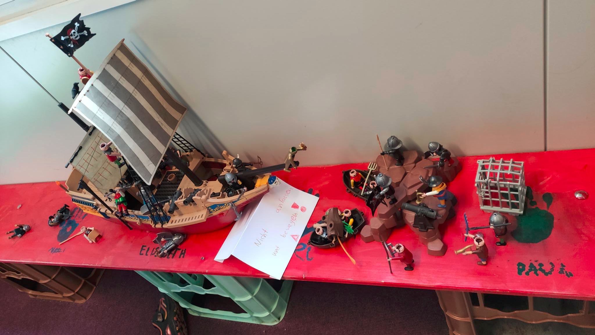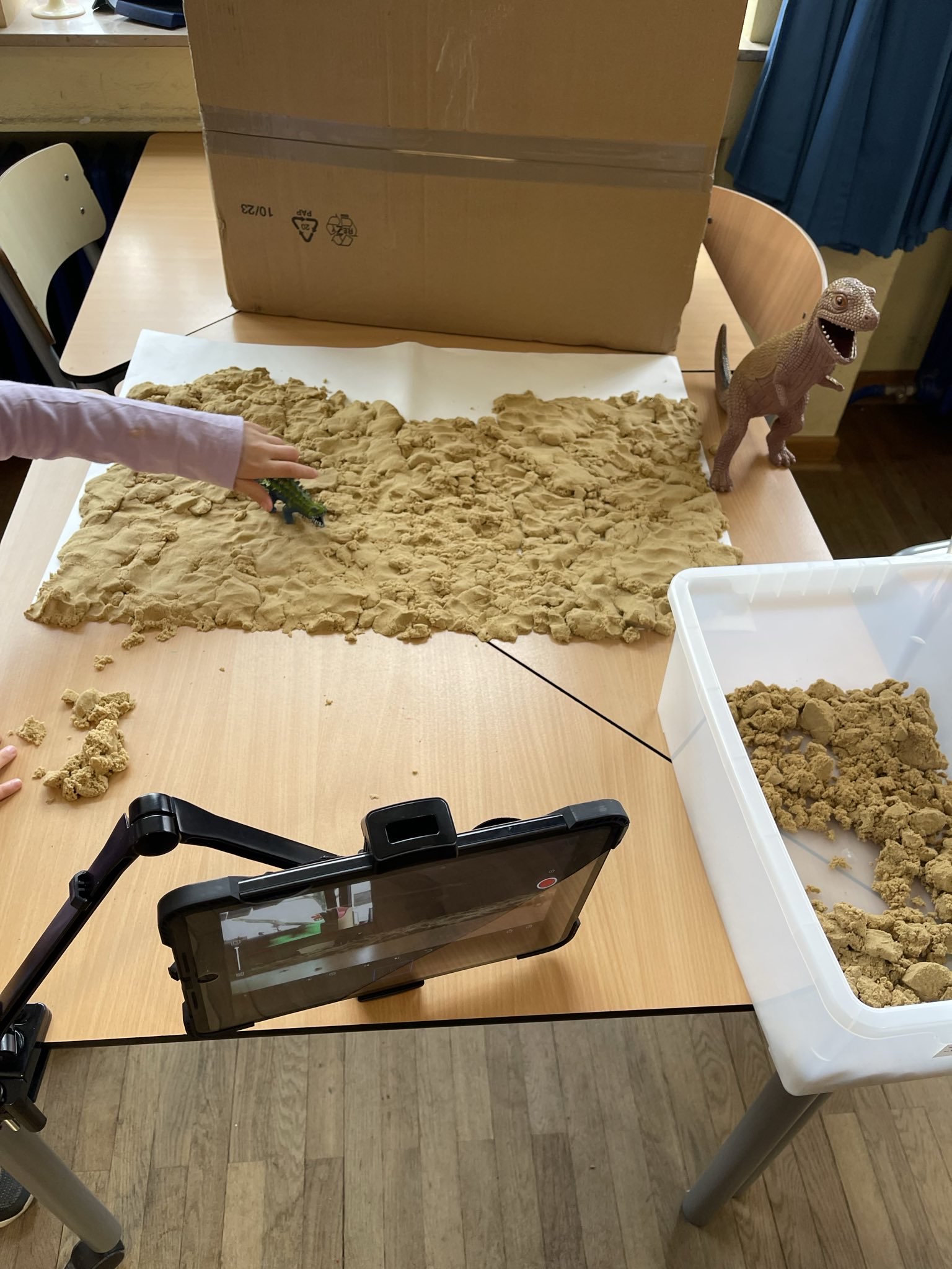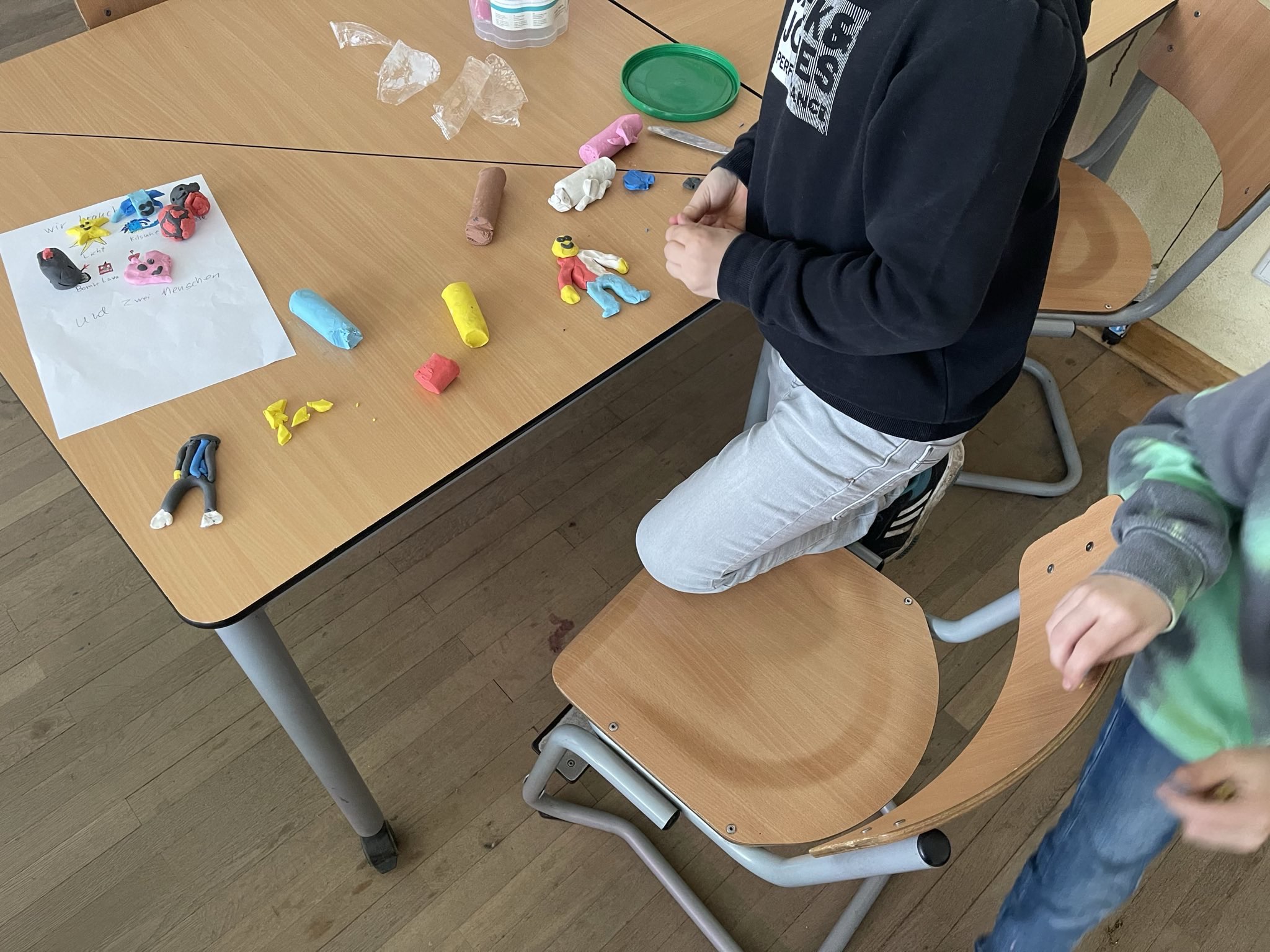 Die Kinder haben ihrer Phantasie freien Lauf gelassen und sind kreativ in der Umsetzung ihrer Ideen geworden. In kleinen Gruppen haben sie sich gemeinsam eine Filmidee überlegt, geplant wie sie diese auf die Leinwand bringen wollen und dann die Kulissen hergestellt. Danach ging es direkt los mit den ersten Fotos für den eigenen Stop-Motion-Film. Als alle Fotos gemacht waren, ging es an die Tonaufnahmen.