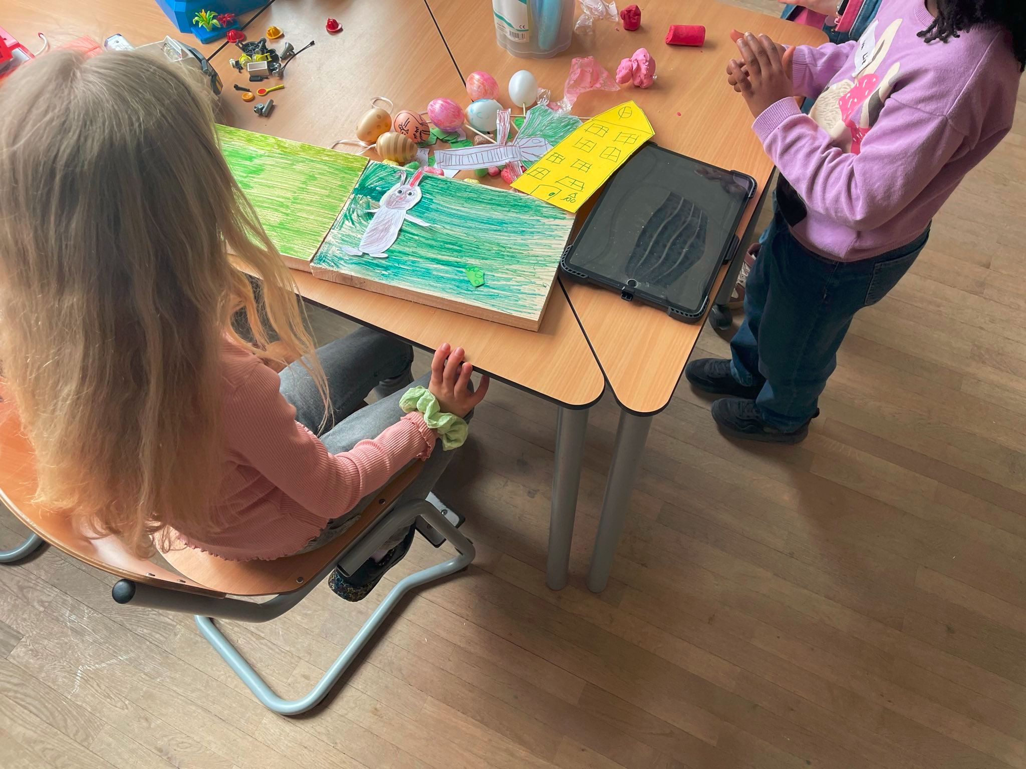 Zwischendurch wurde auch auf dem Schulhof oder im Park gespielt, Sport in der Turnhalle gemacht, österlich gebastelt und viel gespielt.